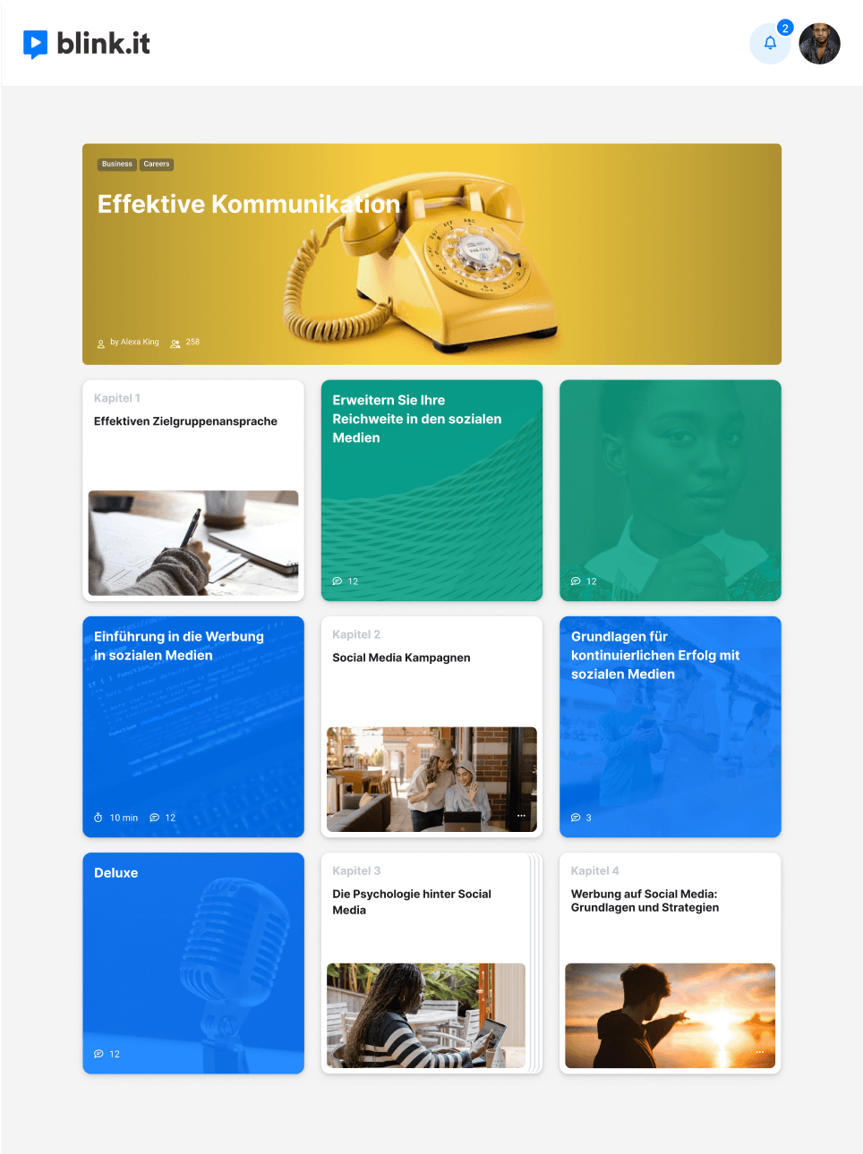 blink.it is an innovative complete solution for creating, distributing, and managing digital courses. It combines the functionalities of a Learning Management System and authoring tool into an easy-to-use learning platform for your e-learning.