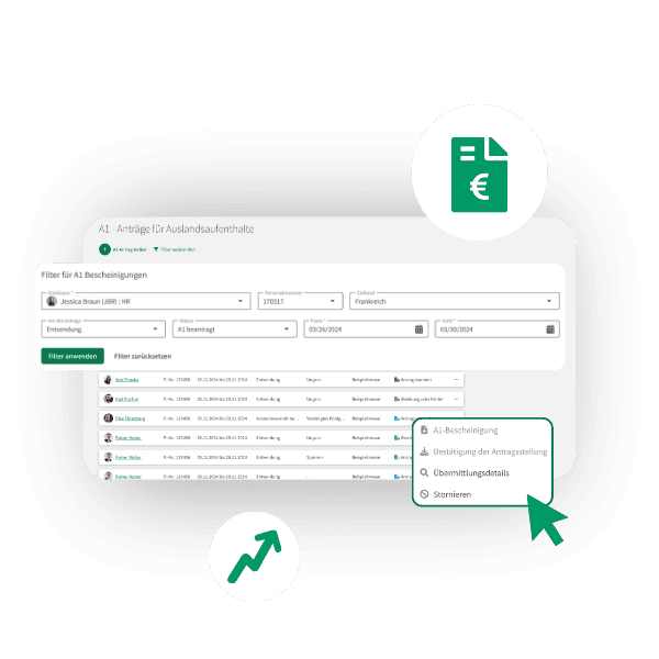 Retrieving and entering relevant data by employees and managers – controllable at any time through a dedicated authorization concept.