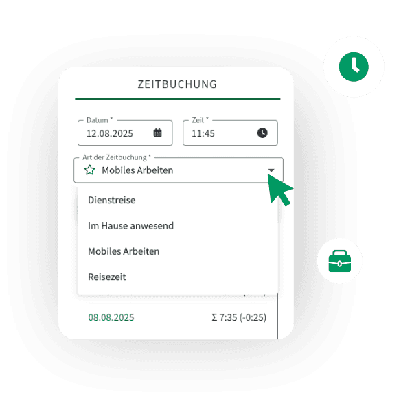 Whether in the home office or production facility – times can be recorded correctly at any time.