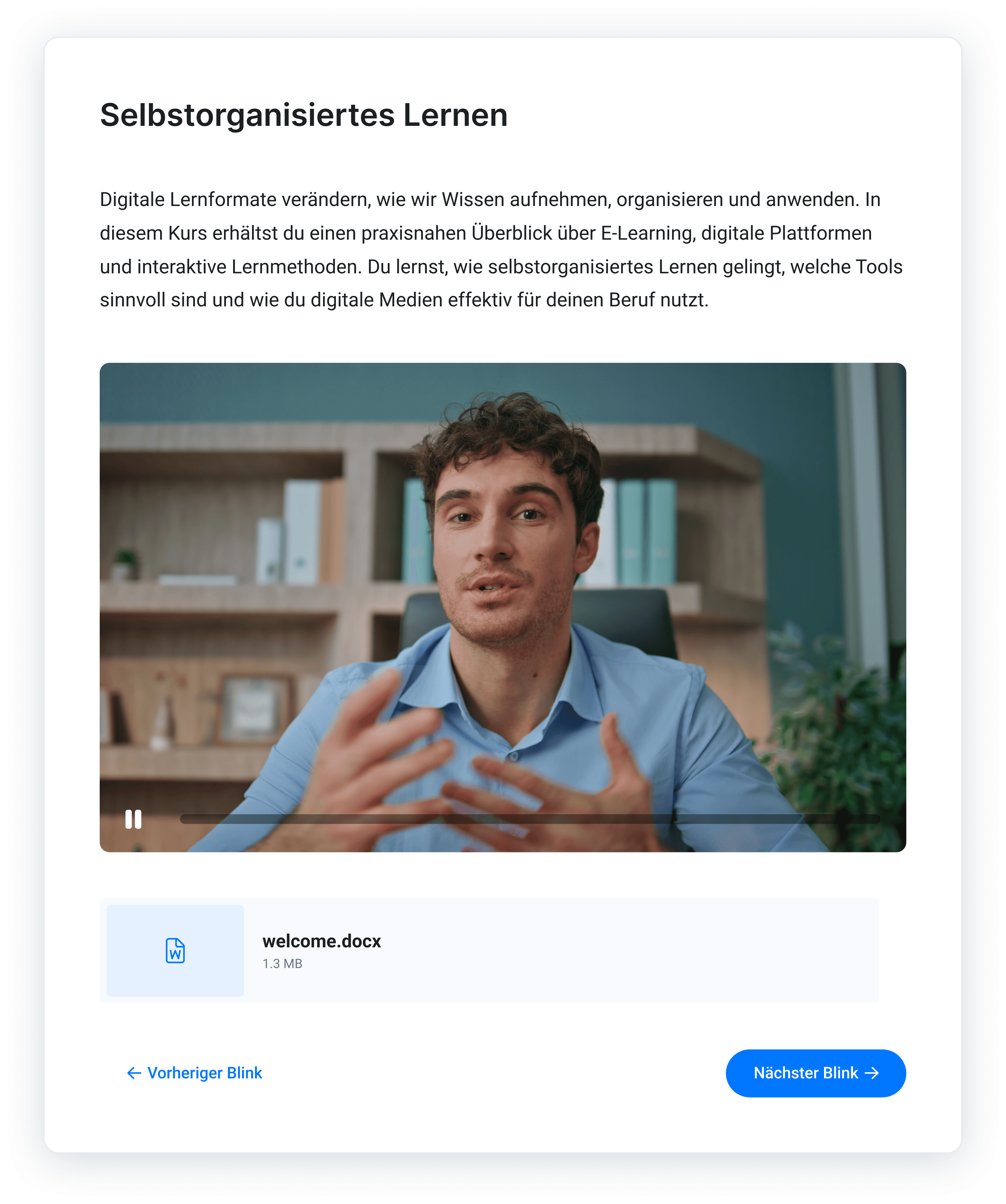 In 15 Minuten zeigen wir dir, wie du mit blink.it digitales Lernen einfach und effektiv umsetzt – von der Kurserstellung und -verwaltung bis zur Motivation deiner Teilnehmenden.